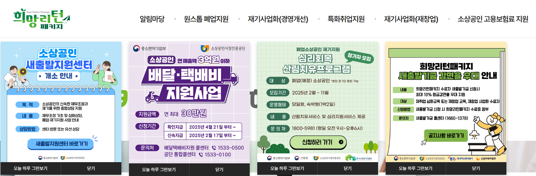 - 신청방법: 희망리턴패키지 홈페이지 ‘원스톱 폐업지원’ 메뉴에서 온라인 신청