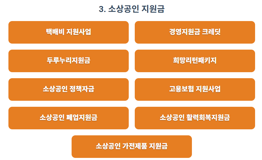 소상공인 희망리턴패키지 주요 지원금