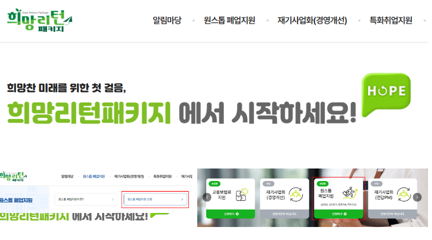 - 희망리턴패키지 공식 홈페이지 접속