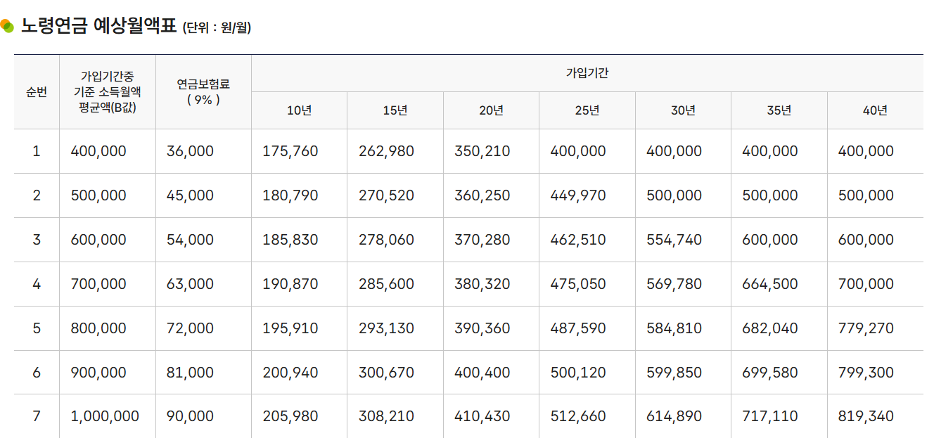 복지로 모의계산기, 국민연금공단, 주민센터에서 본인 상황에 맞게 확인 권장 - 매년 기준 변동: