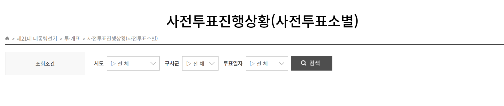 - 중앙선거관리위원회 공식 홈페이지에서 전국 및 시·도별, 시·군·구별 사전투표율을 실시간으로 확인할 수 있습니다.