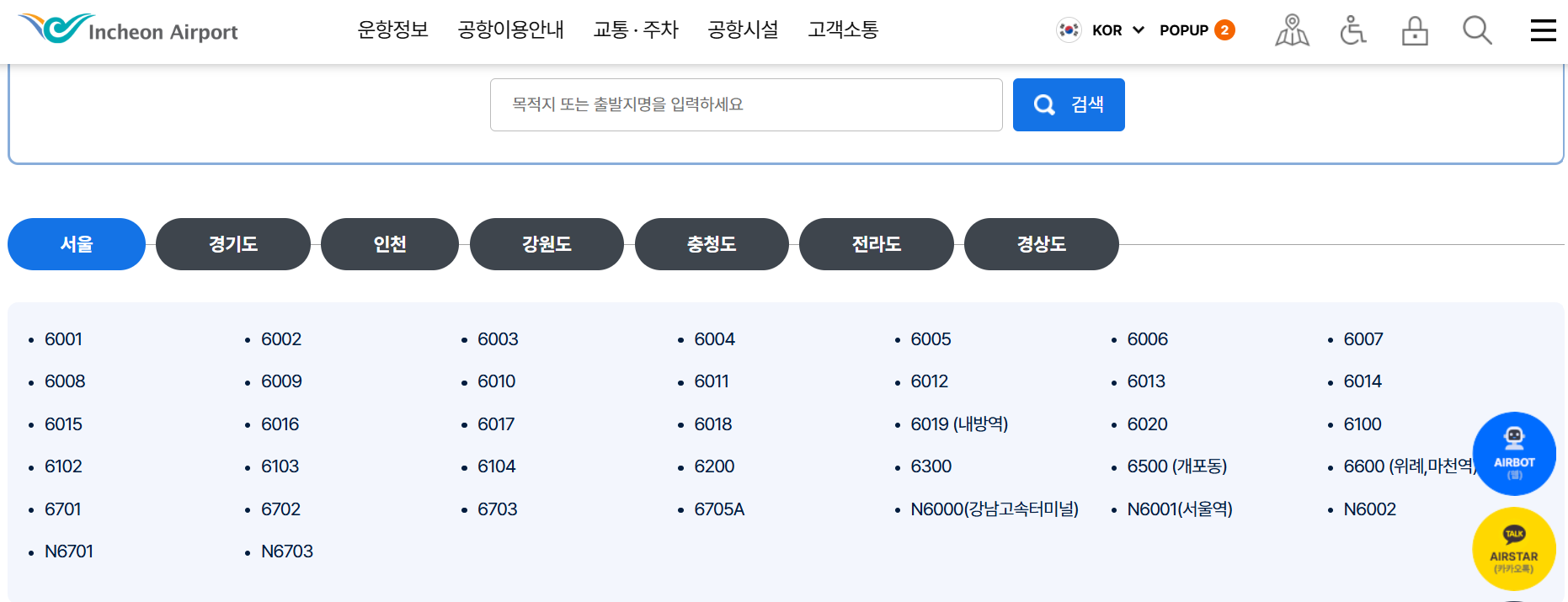 - 주요 노선: 서울, 경기, 지방 주요 도시에서 인천공항 T1/T2로 운행.