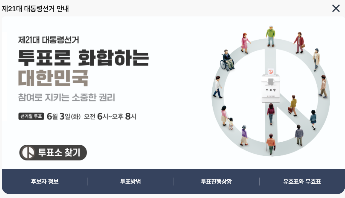 이번 대선에서 여러분의 소중한 한 표가 대한민국의 미래를 결정합니다. 정확한 정보로 투표 결과를 신중하게 지켜봅시다!