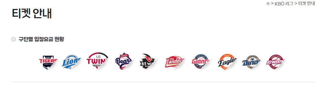 각 야구 구단은 지정된 플랫폼에서만 티켓을 판매합니다.