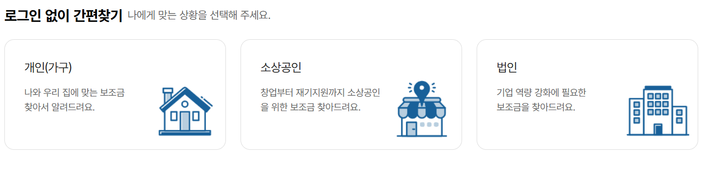 - 내게 맞는 정부 보조금/지원금 자동 추천