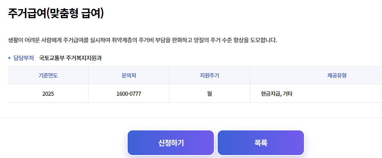 - 2025년 주거급여는 중위소득 48% 이하 가구가 대상, 월세 최대 54만 5천 원(4인 서울 기준)까지 지원